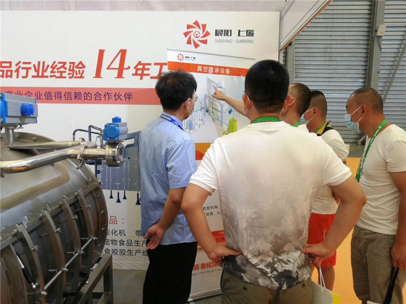 濟(jì)南晨陽(yáng)公司作為寵物食品設(shè)備供應(yīng)商,以連續(xù)數(shù)界參加亞寵展覽會(huì),本次展覽會(huì)我們展示新開發(fā)的真空噴涂設(shè)備,本噴涂設(shè)備主要應(yīng)用于時(shí)產(chǎn)2.5噸以高能寵物糧生產(chǎn)線的高油脂產(chǎn)品加工,填補(bǔ)了國(guó)內(nèi)無(wú)小型自動(dòng)真空噴涂設(shè)備的空白,該產(chǎn)品一經(jīng)亮相,在展會(huì)就有大批客戶不斷咨詢?cè)摦a(chǎn)品的技術(shù)問(wèn)題。