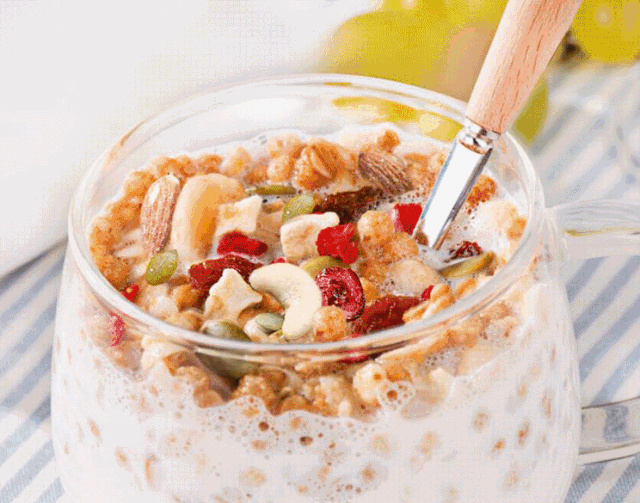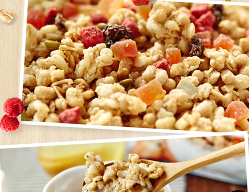 早餐水果麥片選用燕麥,再加上膨化谷物脆經(jīng)過混合噴涂低溫烘培后,混合果干、堅(jiān)果等產(chǎn)品,富含膳食纖維和維生素,是營養(yǎng)豐富的早餐選擇。既可以直接干吃,使口感酥脆可口。也可配上牛奶和酸奶,口感會(huì)更加,吃起來酸甜酥脆,倒入直接拌勻即可吃,無需等待,完全不用擔(dān)心清晨時(shí)間不夠。是新時(shí)代早餐產(chǎn)品新需求。