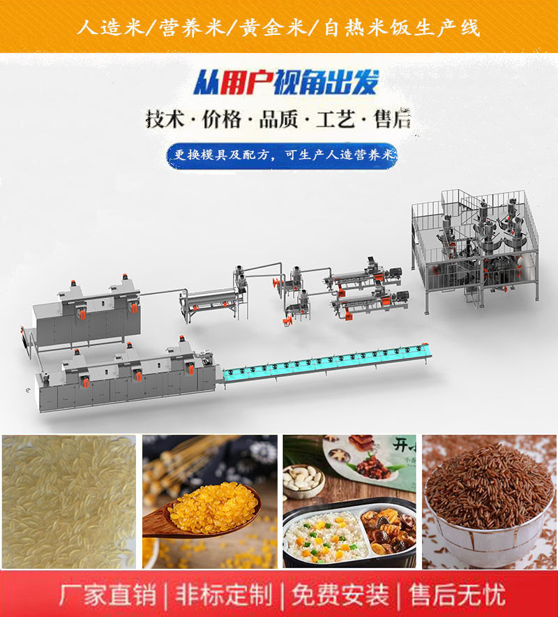 關(guān)于營養(yǎng)米的加工工藝。首先在雙螺桿擠出機(jī)在擠壓膨化食品時(shí),首先要粉碎物料,大小在30-40目,使物料能夠被均勻的混合,通過擠壓蒸煮,淀粉就能夠充分糊化。然后調(diào)理混合的物料,將物料放到預(yù)調(diào)制器中,并進(jìn)行吸水、糊化等,水分保質(zhì)期延長,食品烘烤之后會產(chǎn)生香味,食品的質(zhì)量能夠提高。