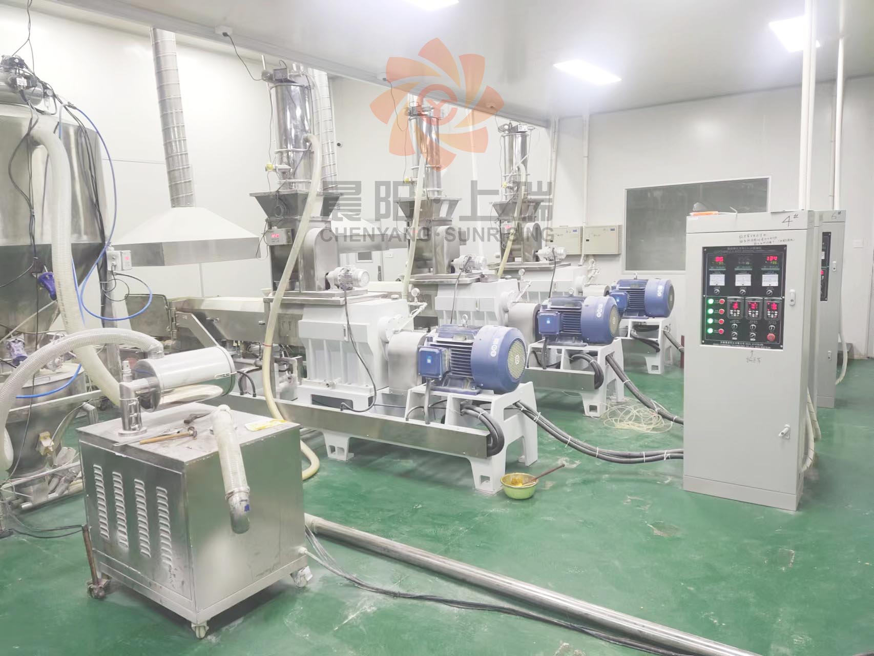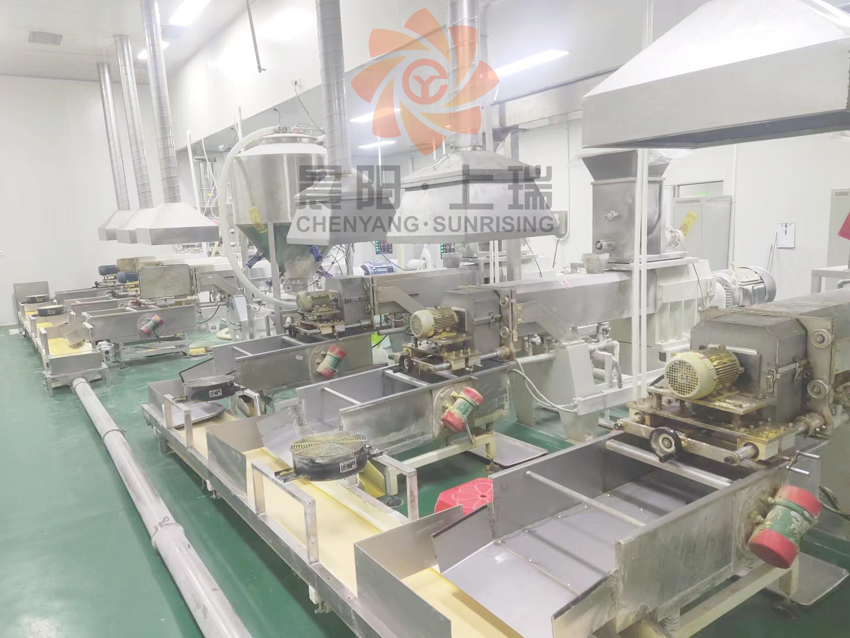 客戶因早餐營養(yǎng)粉(沖調(diào)類營養(yǎng)粉)市場需求不斷增加,產(chǎn)能需求日益旺盛增加,與晨陽分多次訂購營養(yǎng)粉加工膨化設(shè)備,為保證產(chǎn)品的高質(zhì)量生產(chǎn),客戶生產(chǎn)車間使用無塵凈化車間。采用濟南晨陽自主研發(fā)的新型62雙螺桿膨化機,本型號的機器單機產(chǎn)能300公斤每小時,本機型運行穩(wěn)定,產(chǎn)品質(zhì)量在同行業(yè)排在前端,客戶用該機型24小時不間斷連續(xù)運行,單機日產(chǎn)能7.2噸。該機型在客戶工廠經(jīng)住考驗,得到客戶的充分肯定。在日產(chǎn)7噸的產(chǎn)能下已經(jīng)復制6臺機器,擴產(chǎn)到日產(chǎn)能到45噸,產(chǎn)能和質(zhì)量的穩(wěn)定在同行業(yè)已經(jīng)達到頂端。客戶根據(jù)市場需求,已經(jīng)在研產(chǎn)新的生產(chǎn)線,規(guī)劃未來,未雨綢繆!感謝客戶的信任,我們將一如既往的用熱情的服務(wù)和更高的質(zhì)量回饋客戶嗎,合作共贏,同謀發(fā)展!