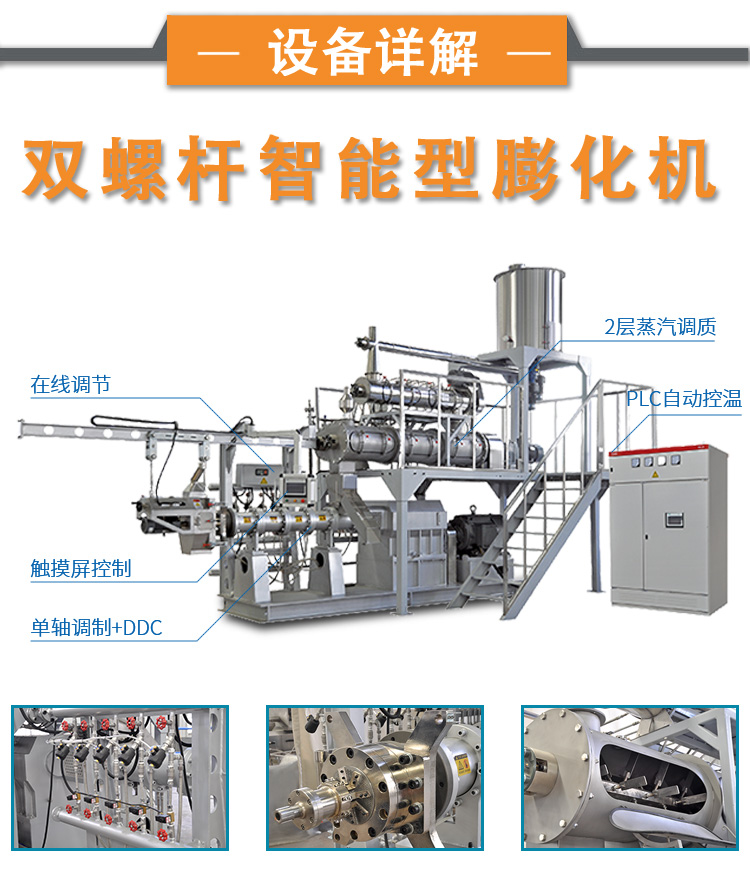 3. 膨化處理:經(jīng)過(guò)破碎與烘干的原料會(huì)被送入膨化機(jī)中,通過(guò)高溫高壓的處理,使原料膨化。這一步可以增加飼料的體積,提高其在水中的穩(wěn)定性和適口性。
