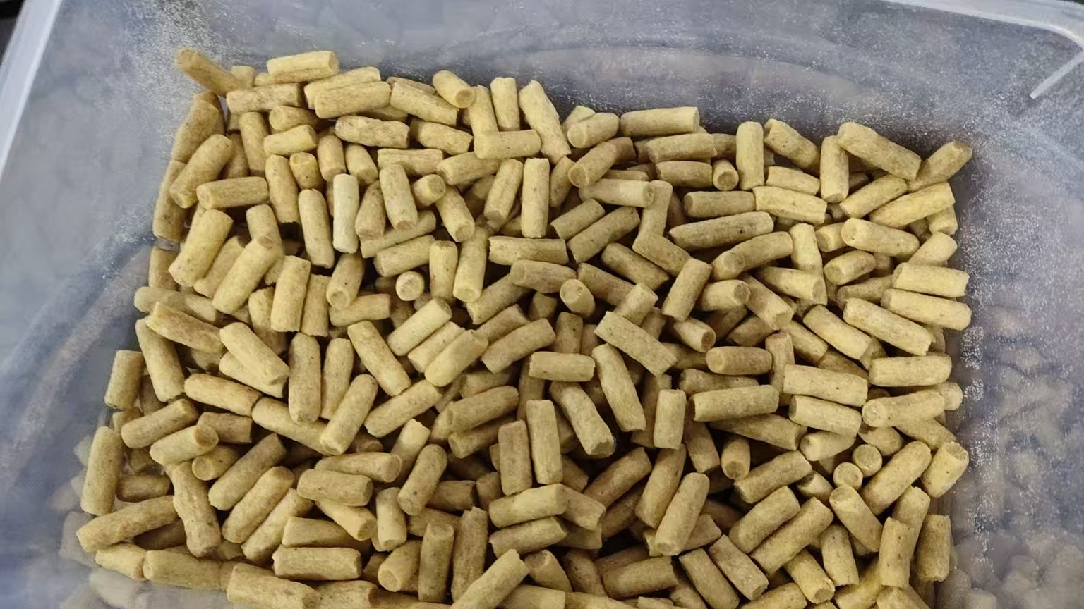 造粒成型:經(jīng)過(guò)膨化處理的飼料被輸送至造粒成型機(jī)中進(jìn)行成型,加工成不同形狀、不同大小的顆粒,以滿足不同階段魚(yú)類的需求