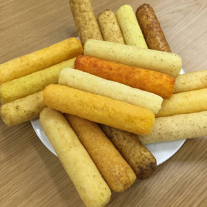 本生產(chǎn)線改變生產(chǎn)工藝流程可以生產(chǎn)夾心米果、米餅、芝麻棒、麥燒、醬油餅等產(chǎn)品。也可用于生產(chǎn)直接膨化型小食品,芝士球、玉米棒、麥香雞塊等產(chǎn)品;本生產(chǎn)烘干機(jī)有電熱型和燃?xì)庑涂晒┻x擇,根據(jù)產(chǎn)能大小合理設(shè)計(jì)烘干機(jī);調(diào)味設(shè)備有單滾筒調(diào)味機(jī),雙滾筒調(diào)味機(jī)、稱重式雙頭八角調(diào)味機(jī)