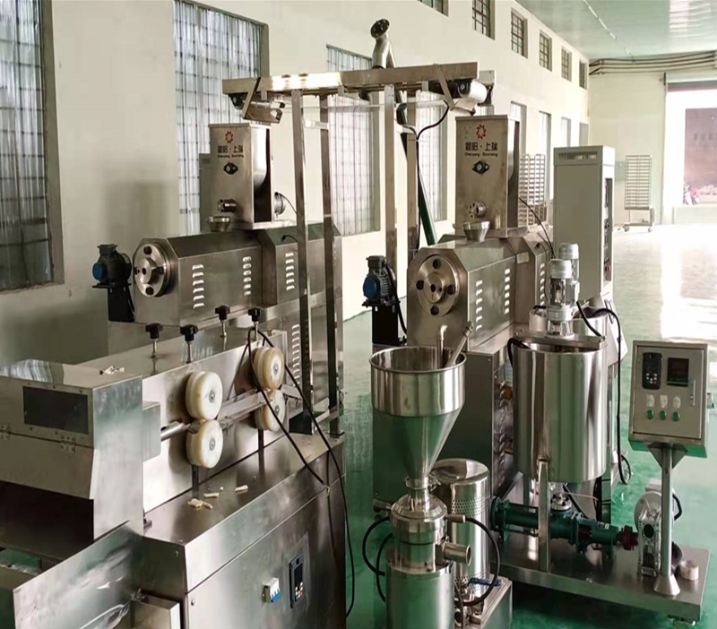 原料混合-膨化-夾心-整形切斷-烘干-噴油調(diào)味-冷卻-包裝