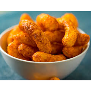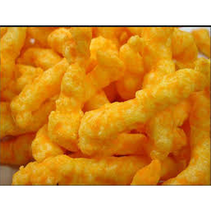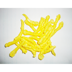 奇多是一種特殊的擠壓膨化型小食品,玉米糝進入旋轉頭擠壓機中,在擠壓機兩個轉盤的 擠壓與揉搓作用下,玉米糝形成不規(guī)則的扭曲形狀,然后切刀將其切成所需長度的產品。奇多可以油炸后調味,也可焙烤后調味,因 其美味而深受消費者歡迎。