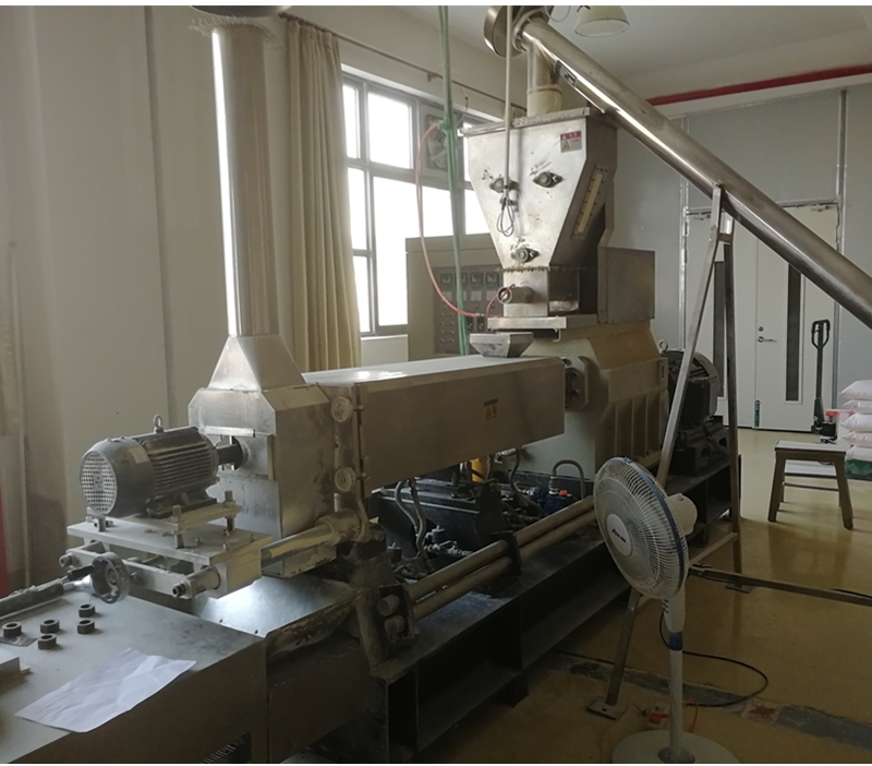 原料混合-擠壓膨化-烘干-粉碎-混合--包裝